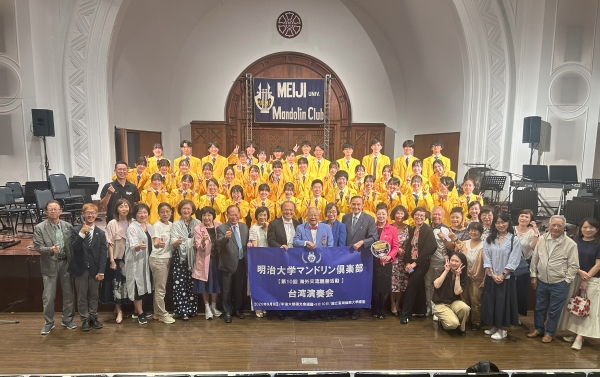 明治大学の公認サークルで、日本を代表する作曲家・古賀政男氏が設立に加わり、創部103年の歴史を誇る「マンドリン倶楽部」が海外交流親善活動の一環として、台湾で演奏会を開催しました。
